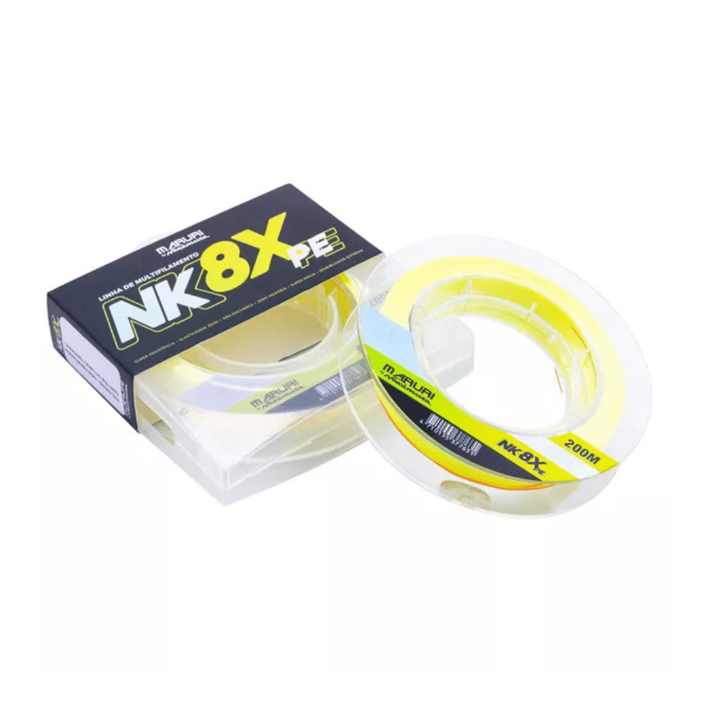 A linha NK 8X é resultado da aplicação da mais alta tecnologia, trançada com maquinário e matéria prima de última geração, resultando uma trança bem mais unida e compacta; super lisa, evitando atrito e corrosão aos passadores, proporcionando arremessos mais longos e precisos, sensibilidade elevada ao máximo, sinta os ataques dos peixes por mais sutil que ele seja, elasticidade zero, possibilitando fisgadas mais rápidas e, portanto mais precisas; zero memória para melhorar o arremesso e evitar cabeleira. Linha Multifilamento NK 8X é trançada em 8 fios de 100% PE sua fabricação é em polietileno especial.