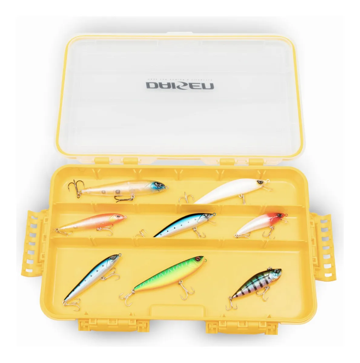Estojo de Pesca Daisen DS 02 35,5cm Estanque O Estojo de Pesca Daisen DS 02 é a escolha ideal para pescadores que buscam organização, durabilidade e praticidade. Produzido em material resistente, ele foi desenvolvido para suportar uso constante nas mais variadas condições. A tampa transparente permite visualizar rapidamente iscas, anzóis e acessórios, sem precisar abrir, garantindo agilidade no momento da pescaria. Com divisórias internas ajustáveis, você pode personalizar o espaço de acordo com suas necessidades, acomodando diferentes tamanhos de iscas e chumbadas de forma organizada. Seus fechos reforçados proporcionam total segurança, mantendo o estojo bem fechado mesmo em movimento. Além disso, o DS 02 é estanque, protegendo seus equipamentos contra respingos e umidade, essencial para pescarias em ambientes úmidos. Leve e prático, com apenas 515 g, oferece o equilíbrio perfeito entre robustez e facilidade de transporte. Características: Marca: Daisen Modelo: DS 02 Máximo de compartimentos: 16 Dimensões: L- 22,5cm x C- 35,5cm x A- 5cm Material: Polipropileno Tampa transparente para fácil visualização Divisórias internas ajustáveis Fechos seguros e reforçados Peso: 530g Estojo Estanque